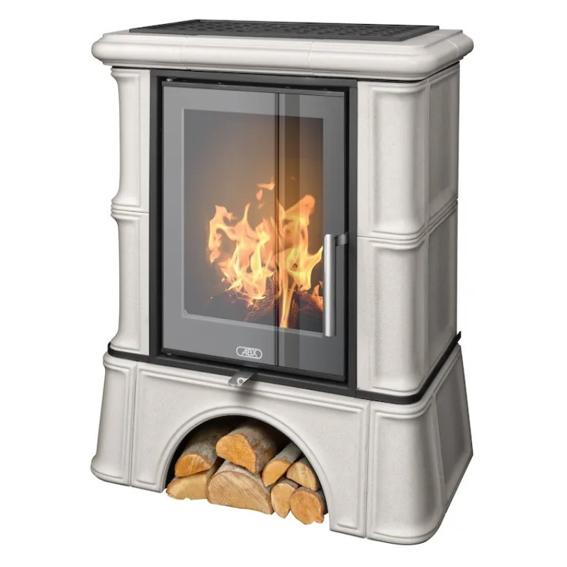 Kachlová kamna ABX Bavaria exklusive kachlový sokl, černý korpus, opláštění kachle ahornweiss