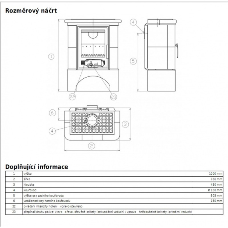 • Kachlová kamna klasického designu s celolitinovou vložkou, s litinovým roštem, vermekulitovou vyzdívkou.