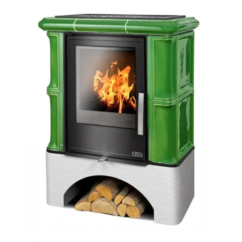 Kachlová kamna ABX Bavaria L I Litinová vložka, rovný sokl, opláštění - zelená kachle moosgrün