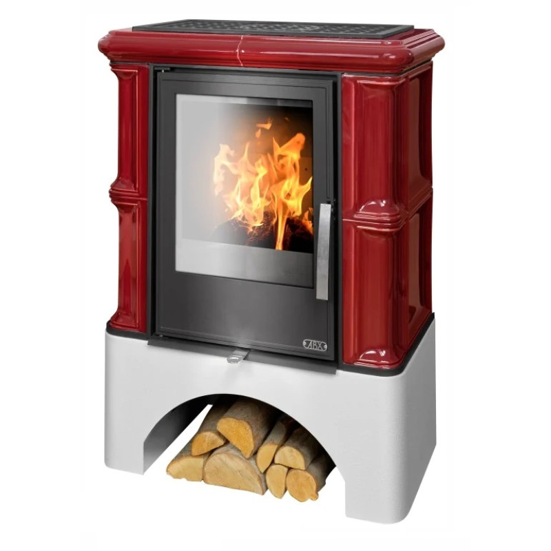 Kachlová kamna ABX Bavaria s výměníkem, rovný sokl, černý korpus, opláštění kachle Bordó