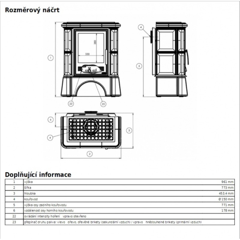 • Kachlová kamna klasického designu s litinovým čelem a dvířky S teplovodním výměníkem (6,9 voda + 3,5 vzduch).