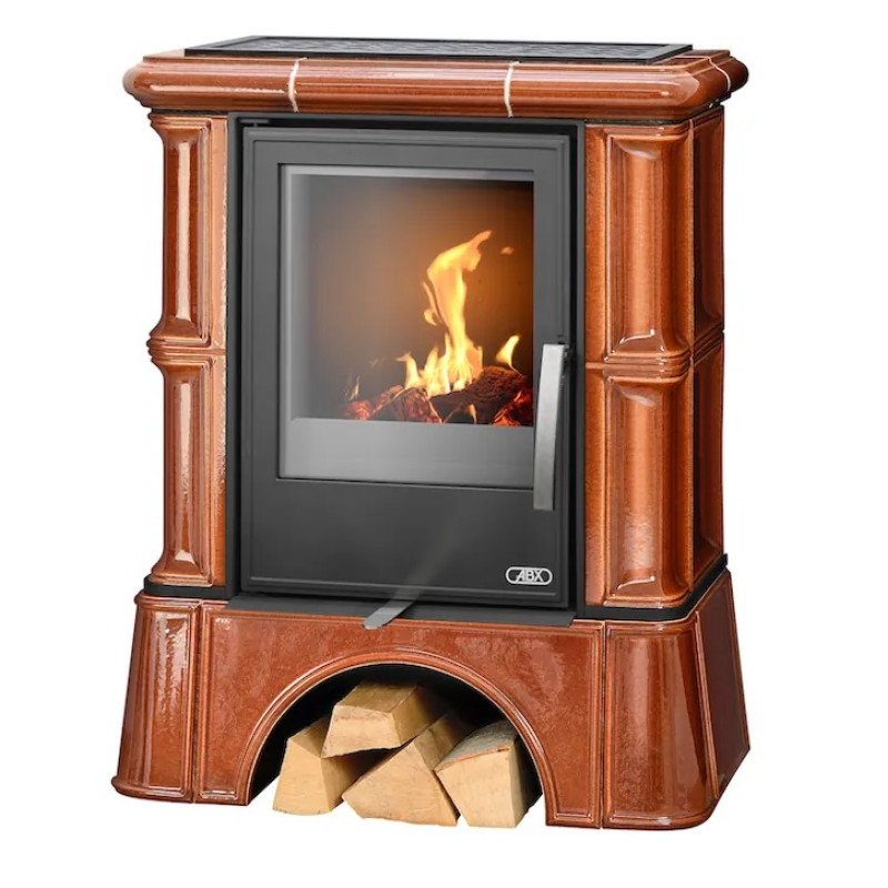 Kachlová kamna ABX Bavaria s výměníkem, kachlový sokl kaštan