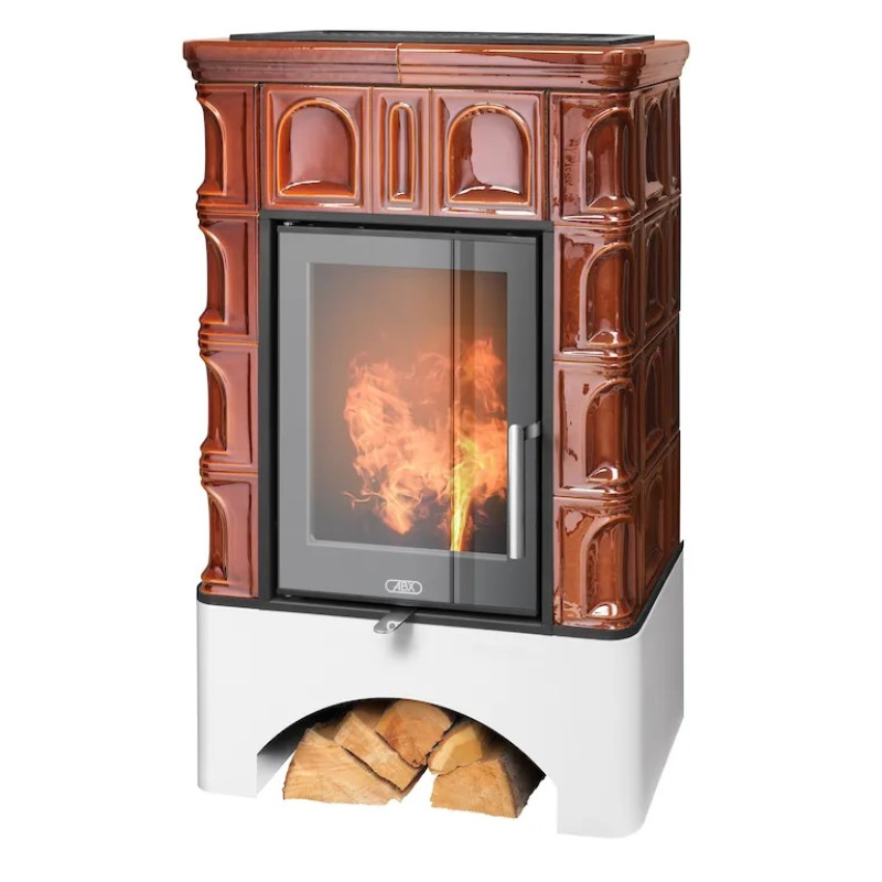 - Kachlová kamna klasického designu s litinovým čelem a dvířky.