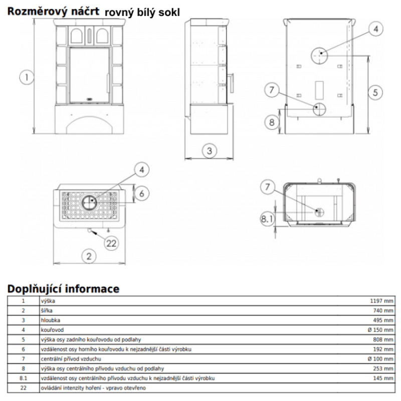 - Kachlová dvouplášťová teplovzdušná (konvekční) kamna s kombi topeništěm (plech/litina) a s centrálním přívodem vzduchu.