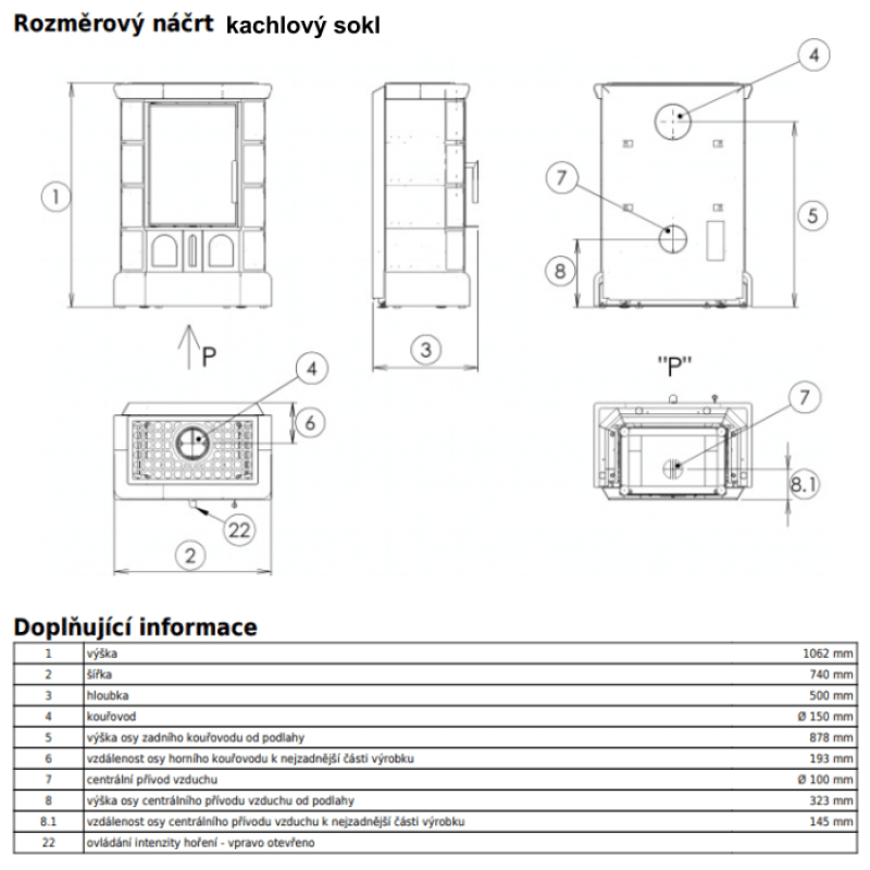 - Kachlová kamna klasického designu s litinovým čelem a dvířky.