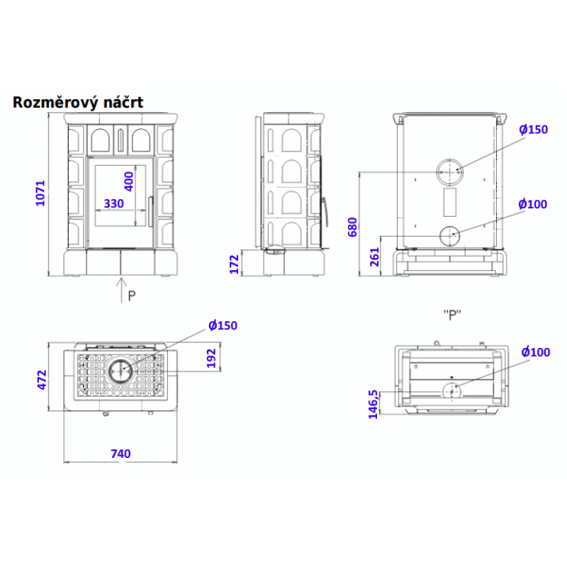 Kachlová krbová kamna ABX Britania kachlový sokl, černý korpus, opláštění Hnědá kachle