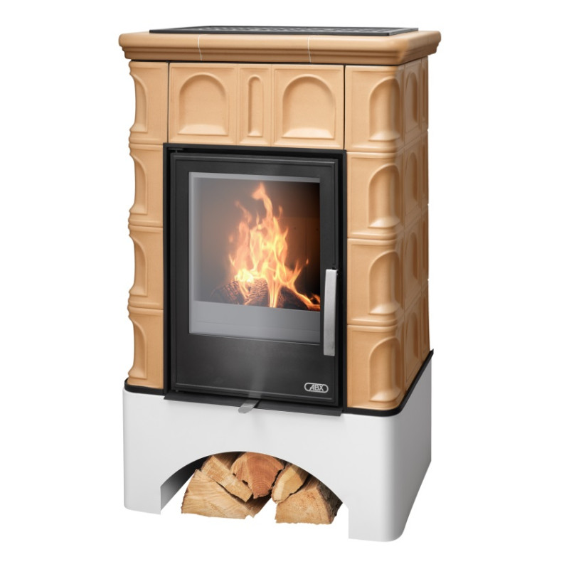 Kachlová kamna ABX Britania rovný sokl, černý korpus, opláštění kachle naturbraun