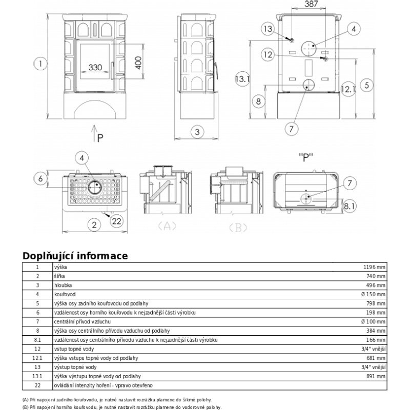 Kachlová kamna ABX Britania s výměníkem, černý korpus, opláštění kachle hnědá