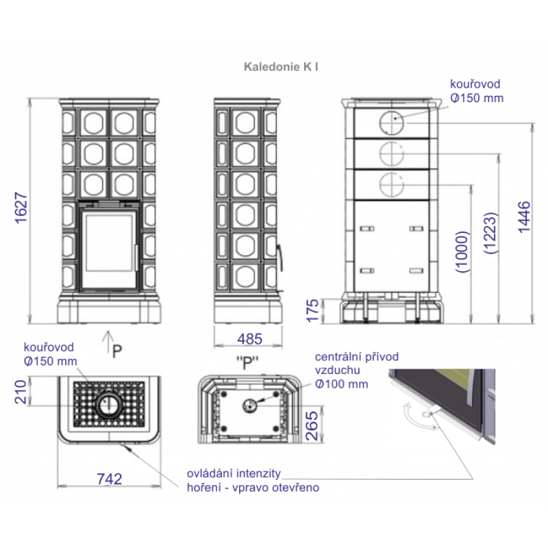 • druh paliva - dřevo / dřevěné brikety / hnědouhelné brikety
