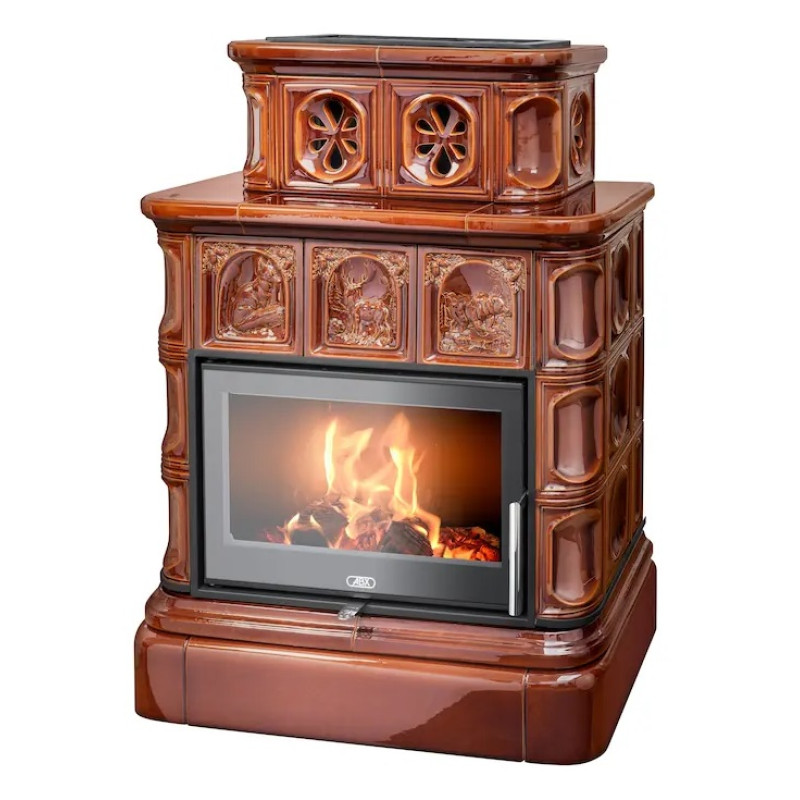 Kachlová kamna ABX Karelie exklusive ,FOREST,, kachlový sokl, Hnědá