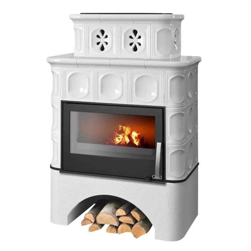 Kachlová kamna ABX Karelie rovný sokl černý korpus, opláštění kachle perle