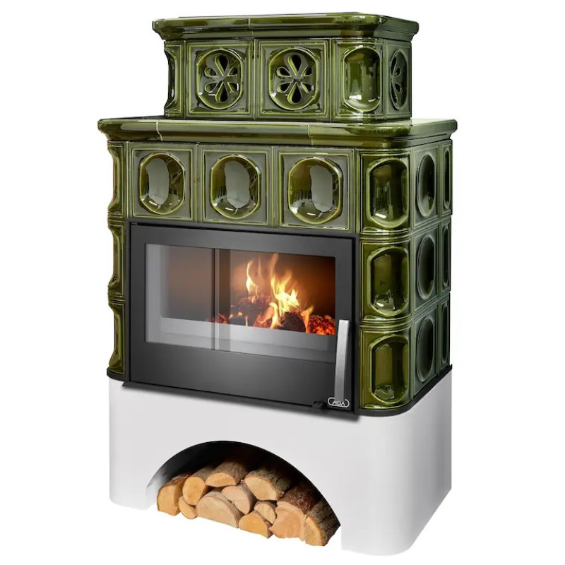 Kachlová kamna ABX Karelie rovný sokl, černý korpus, opláštění kachle zelená