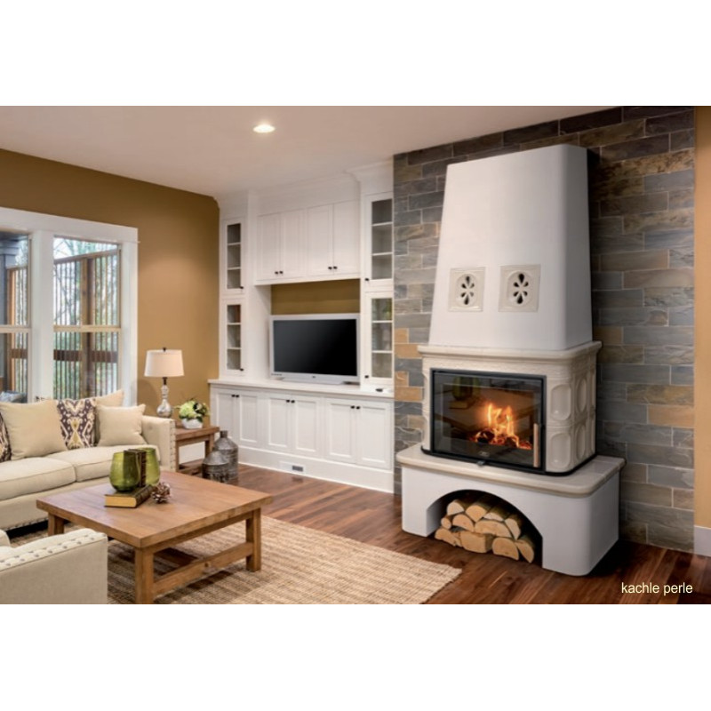 Kachlová kamna ABX Laponie exklusive, černý korpus, opláštění kachle perle