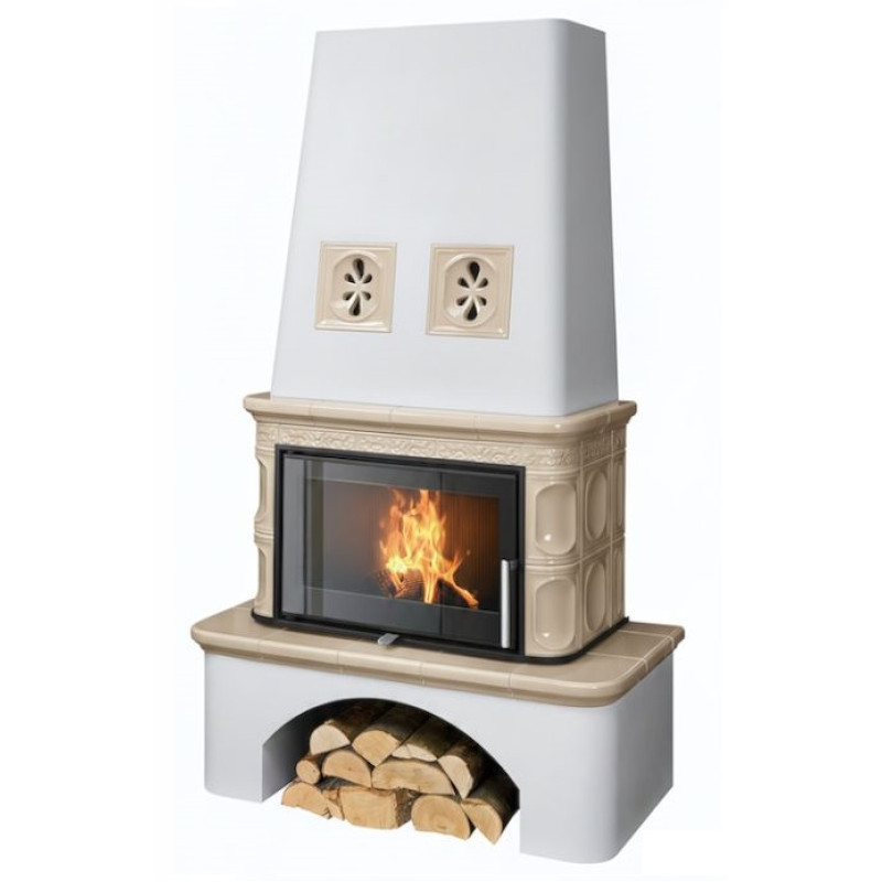 Kachlová kamna ABX Laponie exklusive, černý korpus, opláštění kachle písková