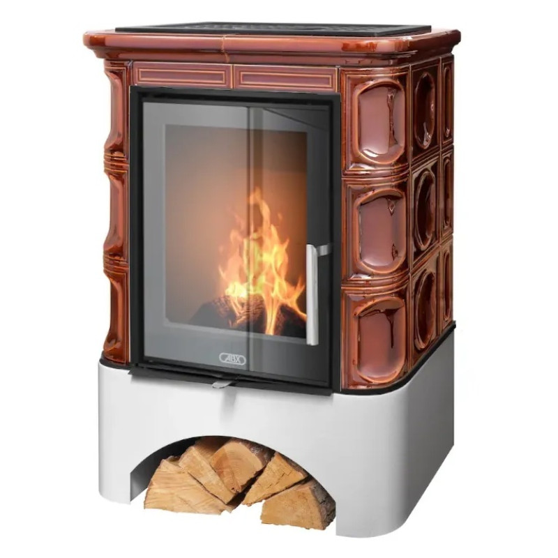 Kachlová kamna ABX Marina exklusive, rovný sokl, černý korpus, opláštění kachle hnědá