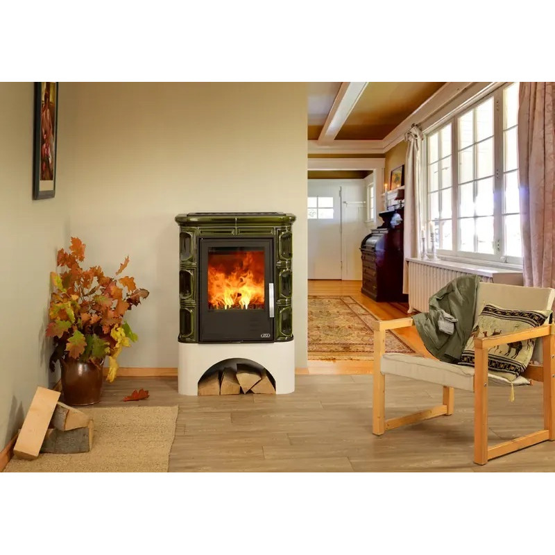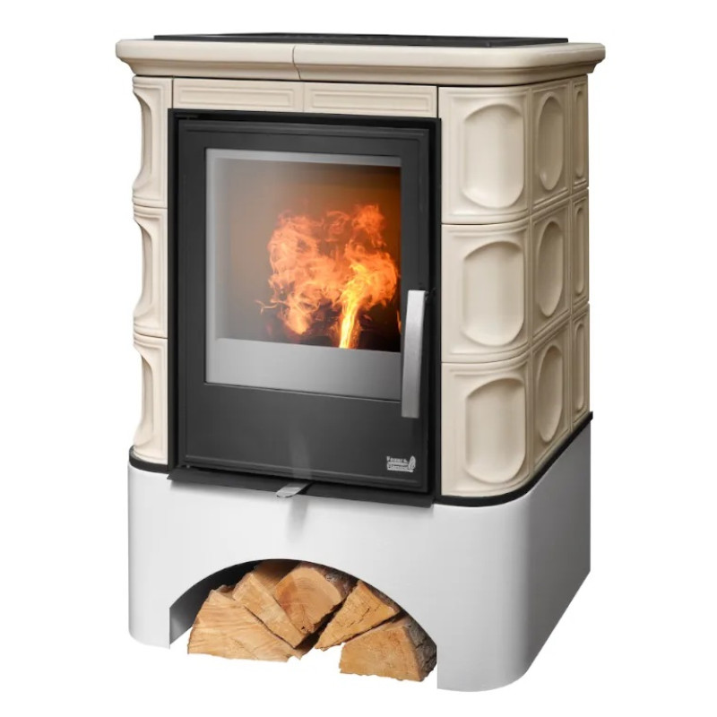 Kachlová kamna ABX Marina rovný sokl, černý korpus, opláštění kachle písková