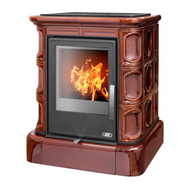 Kachlová kamna ABX Marina s výměníkem, černý korpus, kachlový sokl opláštění kachle hnědá