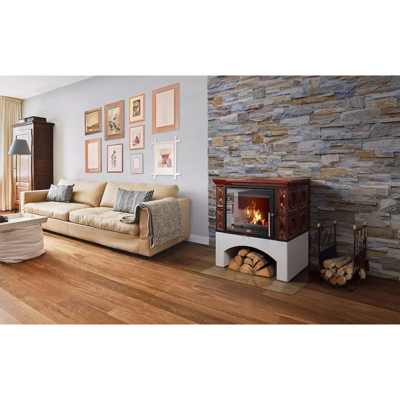 Kachlová kamna ABX Panonie exklusive, rovný sokl, černý korpus, opláštění kachle hnědá