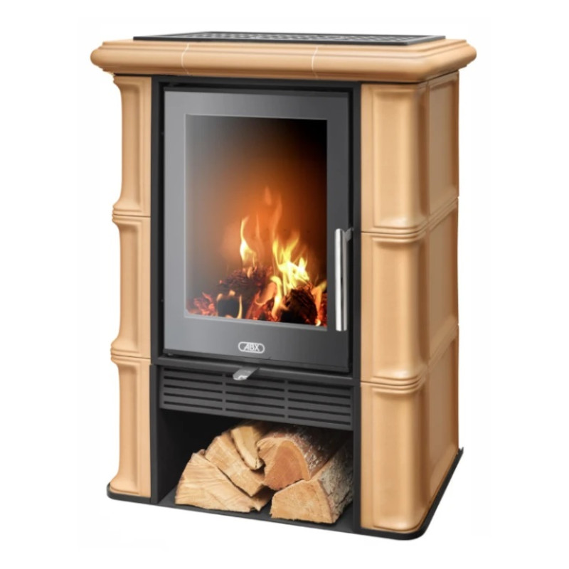 Kachlová Krbová kamna ABX Sicilia exklusive černý korpus, opláštění kachle naturbraun