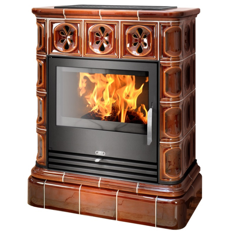 Kachlová kamna ABX Skotia s výměníkem, černý korpus, opláštění kachle hnědá