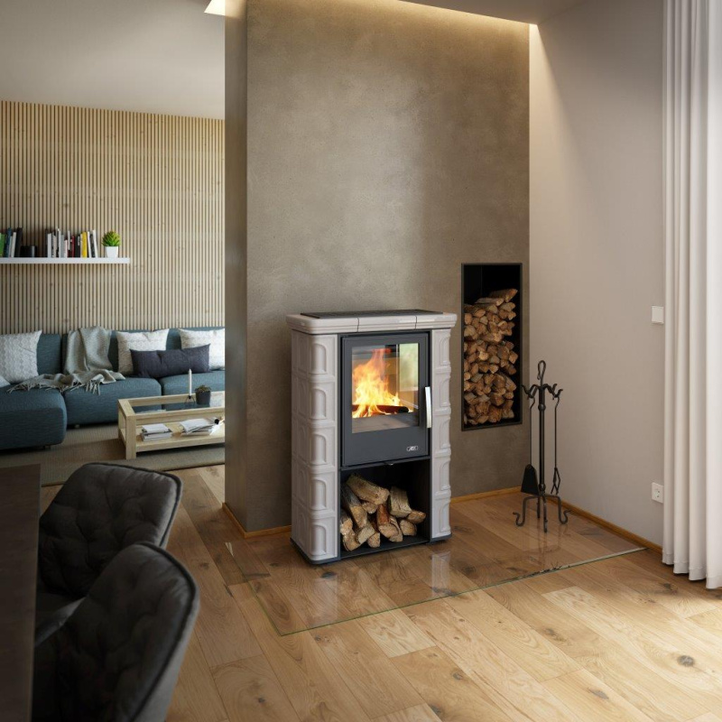 Kachlová Krbová kamna ABX Sardinie černý korpus, opláštění kachle ahornweiss