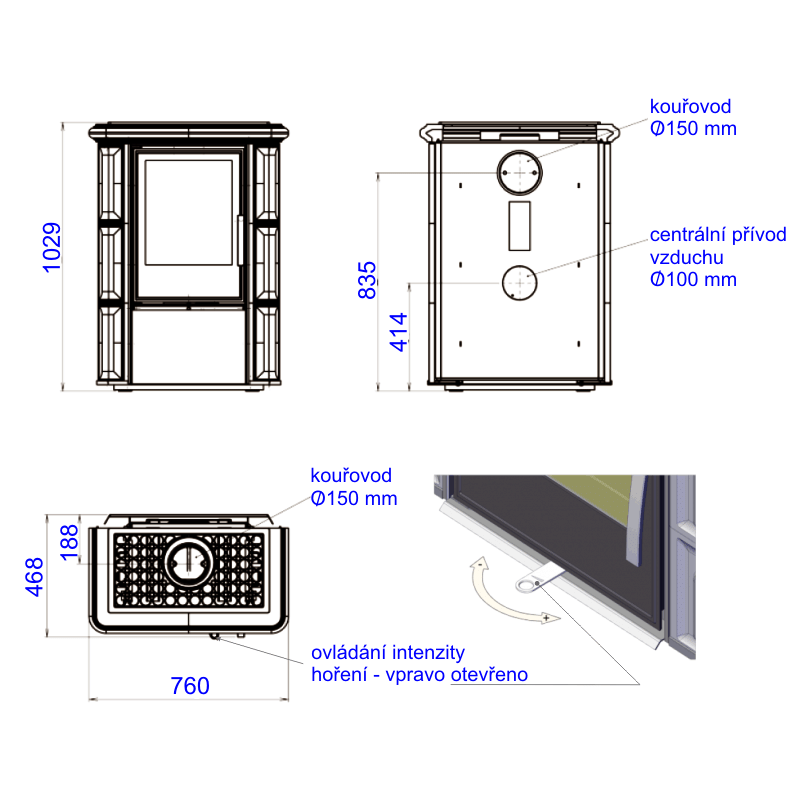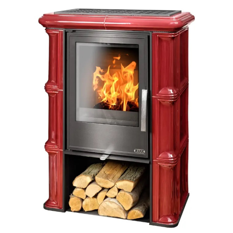 Kachlová Krbová kamna ABX Sicilia černý korpus, opláštění kachle bordo