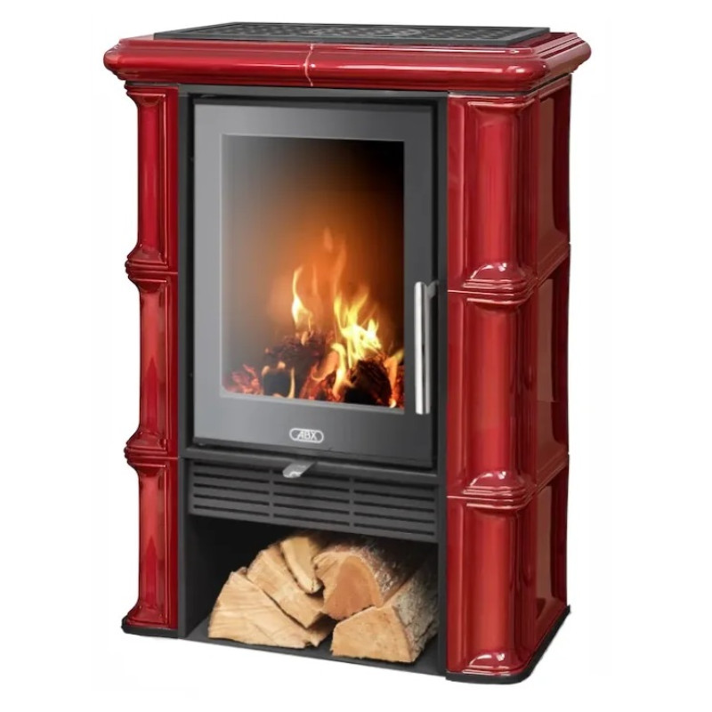 Kachlová Krbová kamna ABX Sicilia exklusive černý korpus, opláštění kachle bordo