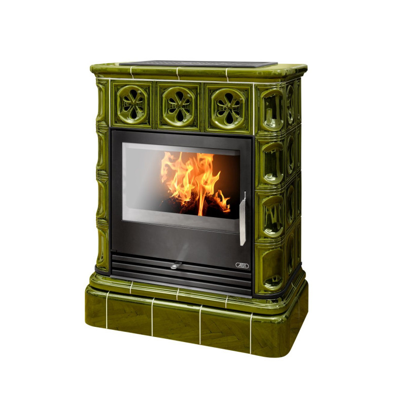 Kachlová Krbová kamna ABX Skotia černý korpus, opláštění kachle zelená
