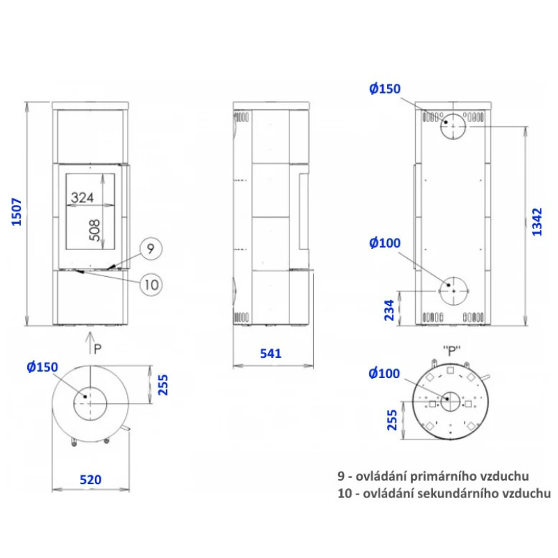 Kachlová Krbová kamna ABX Verona černý korpus, opláštění Coretto