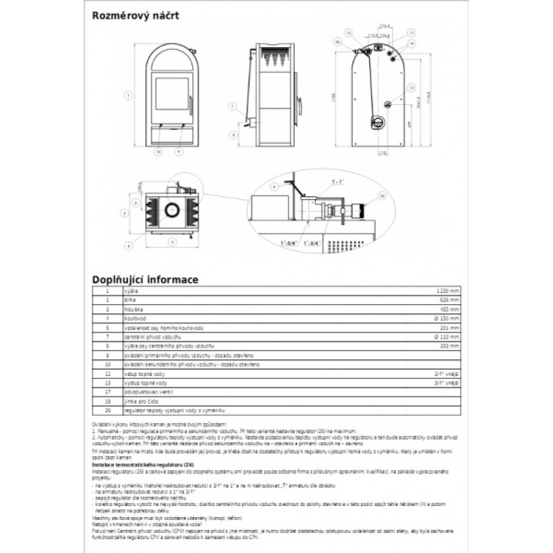 • Předností těchto krbových kamen je velký výkon výměníku až 12,2 kW.