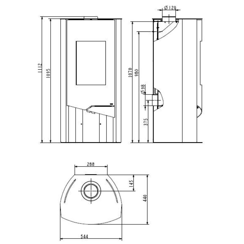 | Připojení kouřovodu zadní, horní (mm) | 120/150 |