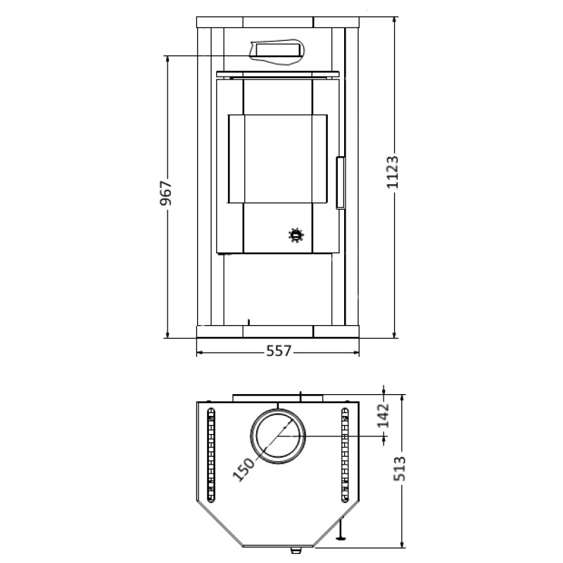 | Rozměry topeniště Š x H x V (mm) | 300x280x280 |