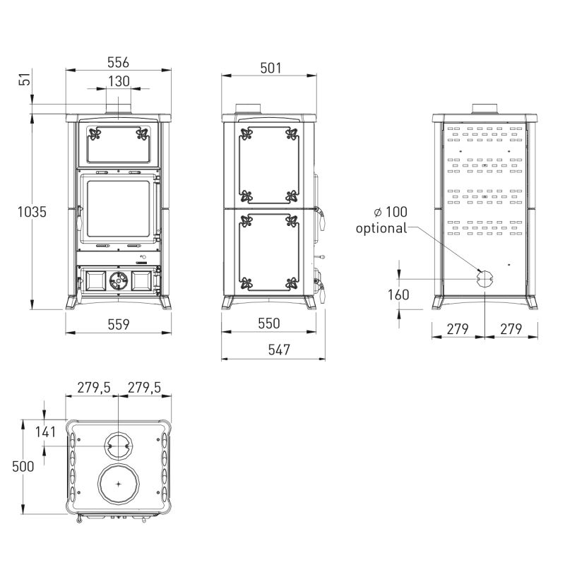 Vzdálenost od hořlavých materiálů z boku kamen: 500 mm