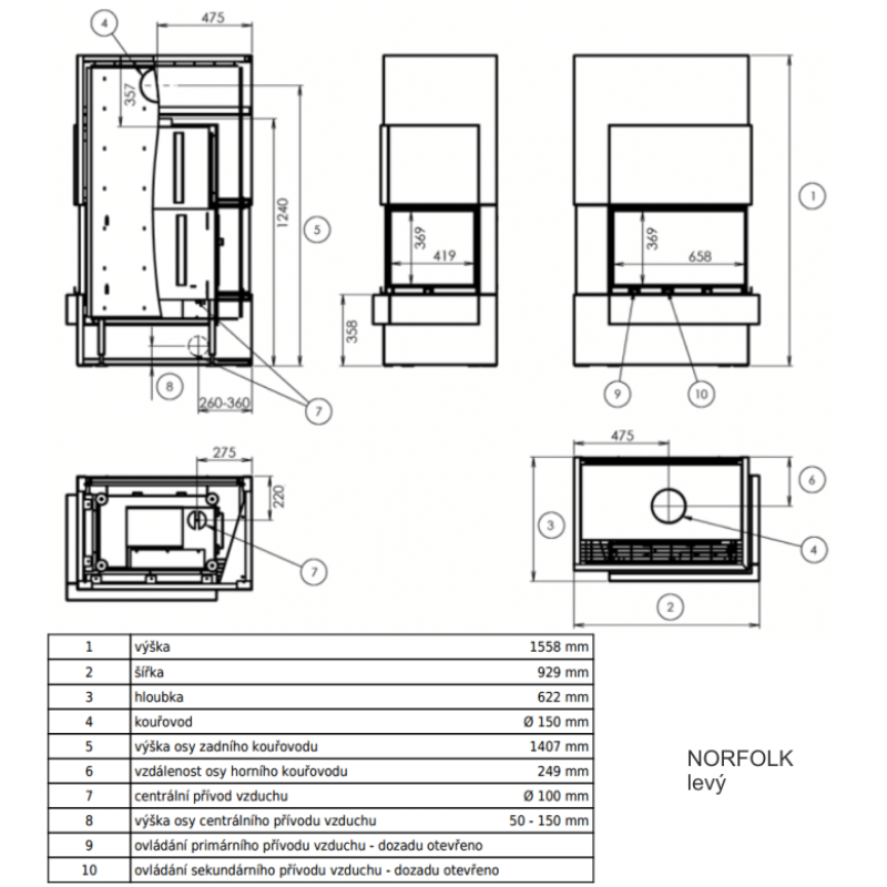 • Kamna se vyrábí v levé a pravé variantě.
