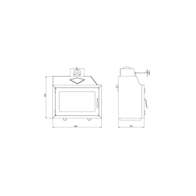 Krbová vložka je vyrobena z ocelového plechu tl. 3 mm a opatřena černým žáruvzdorným nátěrem. Topeniště je osazeno šamotovými tvarovkami a litinovým roštem.