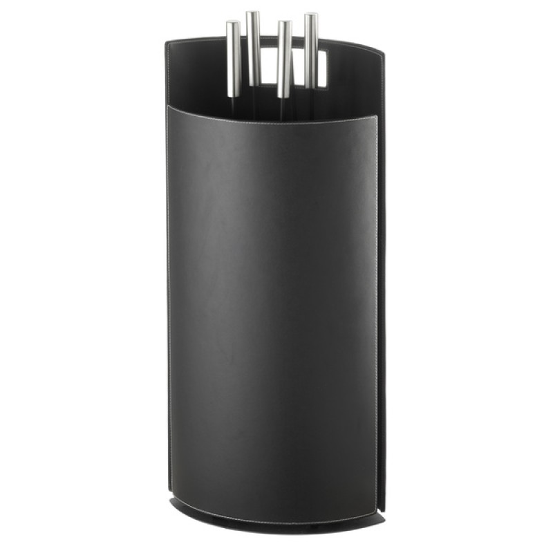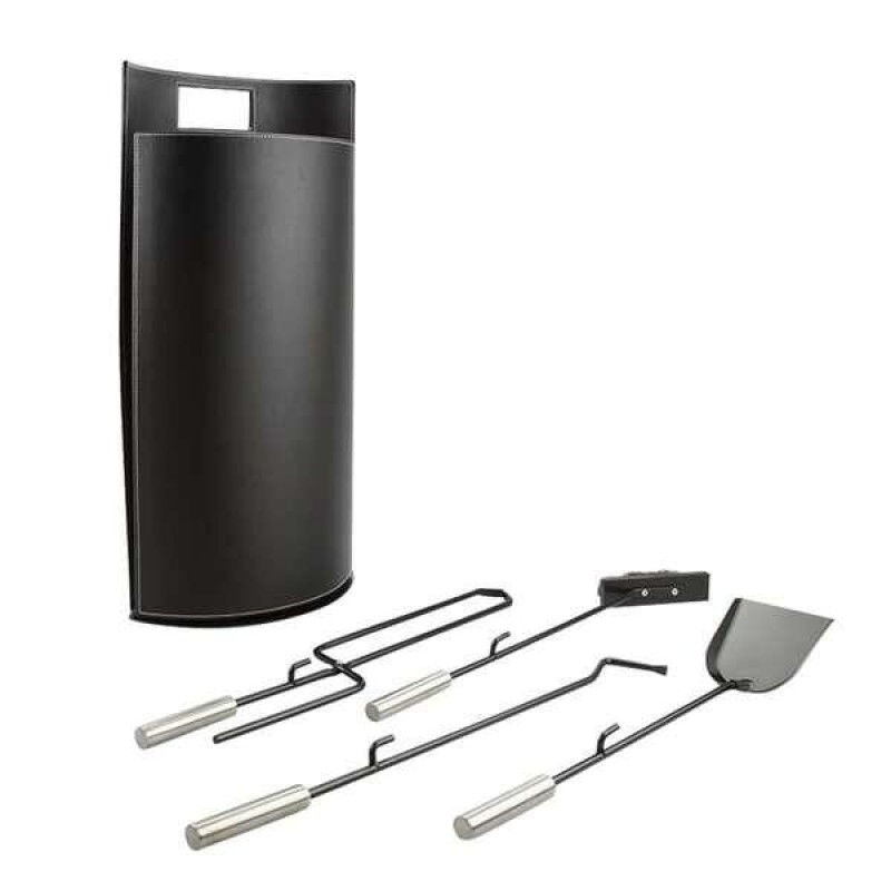 Minimalistický design: Stojan v provedení černé ekokůže je elegantní a nenápadný, dokonale doplňující jak moderní, tak i klasický interiér. Nářadí je uvnitř pouzdra skryto, což udržuje krbový koutek čistý a uklizený.