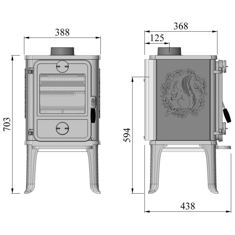 Kamna jsou dodávána s klasickým motivem veverky na bocích.