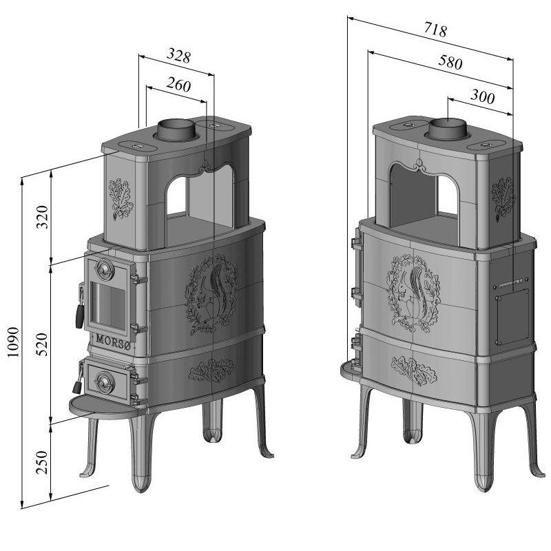 Kamna jsou vybavena pohyblivým roštem, popelníkem a lapačem popela. Vyhřejí plochu do 120 m2 a jako všechna kamna Morso splňují přísné požadavky na životní prostředí.