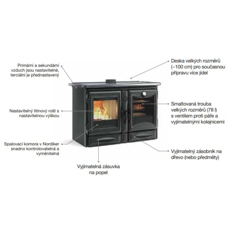 • Dvířka, čelní plocha a rám ze smaltované litiny