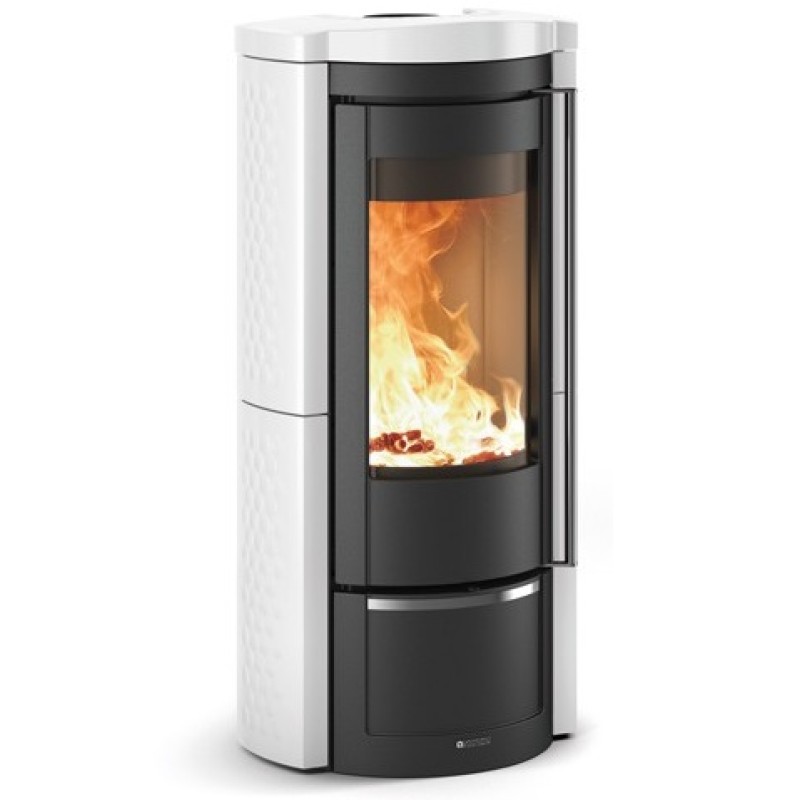 Vertikální topeniště umožňuje přikládání i větších polen. Velké prosklení zaručuje fantastický pohled na hru plamenů v průběhu hoření paliva v topeništi. Kamna mají litinovou přírubu s možností napojení na externí přívod vzduchu. Tím je možné zamezit čerpání vzduchu z interiéru. Jejich kulatý tvar je vhodný k instalaci ke stěně i do rohu. Ve spodní části pod topeništěm je snadno odnímatelný popelník. Ergonomické chromované madlo usnadní přikládání paliva.