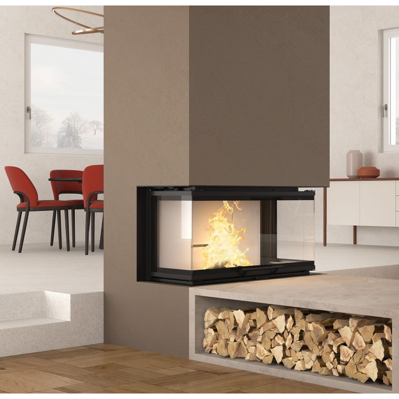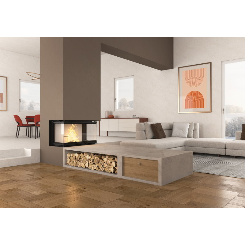 Dvouplášťová teplovzdušná krbová vložka z řady Prestige line s třístranným prosklením (dělené sklo) je konstrukčně upravena pro použití v nových a nízkoenergetických objektech. Konstrukce topeniště krbové vložky je v kombinaci litina s keramickými deskami Nordiker, které akumulují teplo a zlepšují tak průběh spalování. Dvířka krbové vložky jsou také litinová a jsou kryta černým lemem keramického skla přichyceným z vnější strany. Dvířka jsou výsuvná s možností vyklápění dopředu pro jednoduché čištění.