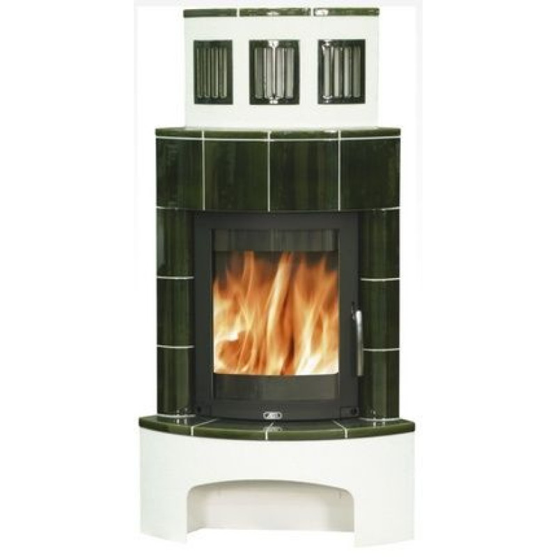 Rohová kachlová kamna ABX Normandie černý korpus, opláštění zelená kachle