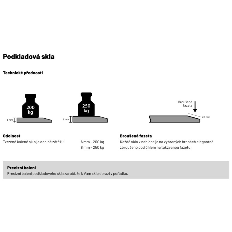Tvrzené čiré kalené sklo odolné zátěži do 250Kg