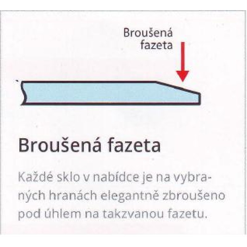 Krbové sklo je na vybraných hranách elegantně zbroušeno pod úhlem na takzvanou fazetu - broušená fazeta. Sklo je precizně baleno na hranách, aby nedošlo k poškození při přepravě.