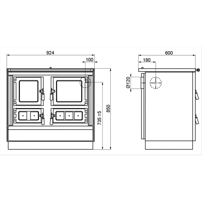 Sporák Klaudie s prosklenými dvířky topeniště a a trouby VSP 9112 šíře 924 mm
