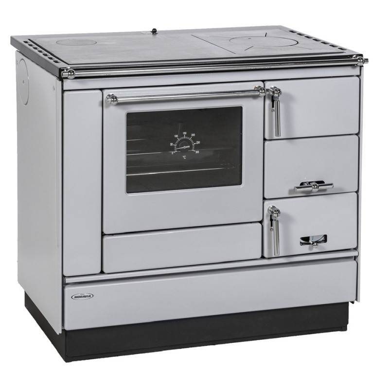Sporák KVS MORAVIA typ 9100 je konstruován na spalováni pevného paliva, jako jsou dřevo a dřevěné brikety.